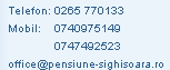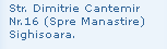 Str. Dimitrie Cantemir Nr.16 (Spre Manastire) Sighisoara Telefon: 0265 770133 Mobil: 0740 975149, 0747 492523 E-mail: